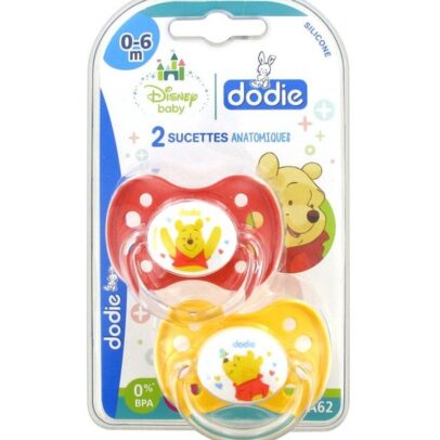 Dodie – Sucettes forme anatomique silicone Disney Baby Winnie l’Ourson (0-6 M) N°A62 – (x2)