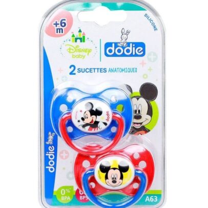 Dodie – Sucettes forme anatomique silicone Disney Baby Mickey (6M +) N°A63 – (x2)