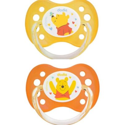 Dodie – Sucettes forme anatomique silicone Disney Baby Winnie l’Ourson (0-6 M) N°A62 – (x2)