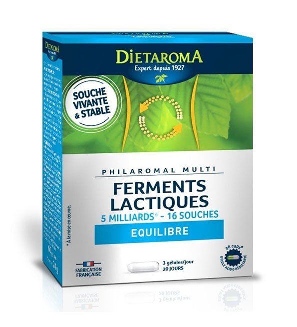 Notre flore intestinale est composée de milliards de bactéries « amies » essentielles au bon fonctionnement de notre organisme. L’entretenir régulièrement est le secret pour être en forme. Pour cela, ayez le réflexe Dietaroma avec le complément alimentaire ferments lactiques Philaromal Equilibre !