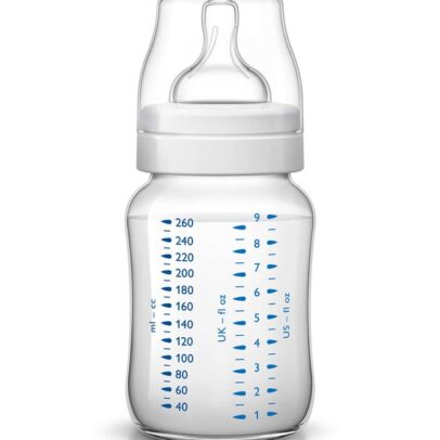 Le biberon Evolution de DODIE est doté d’une tétine anatomique EASY AIR® en silicone extra souple (débit 3) à 3 vitesses, avec une valve brevetée qui aide à réduire les risques de coliques, de régurgitations et d’aérophagie.