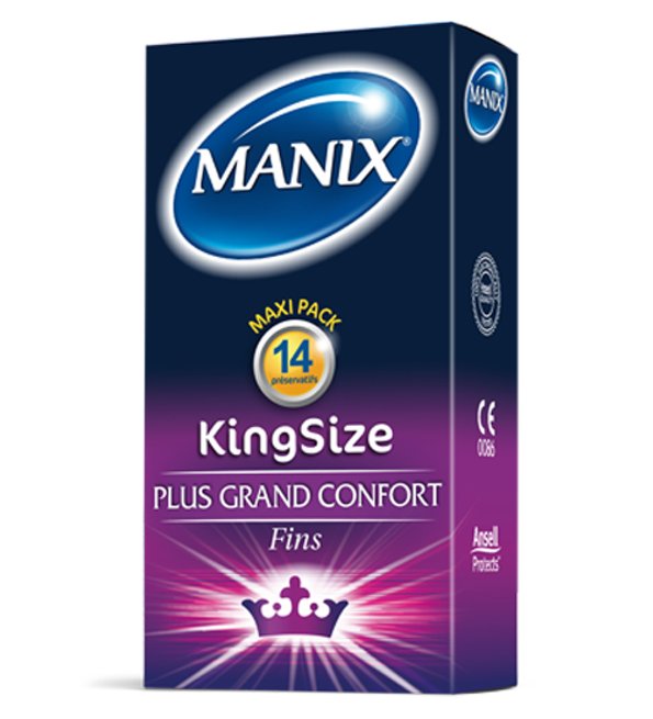Manix King Size 14 Préservatifs sont des préservatifs fins et de grande taille.